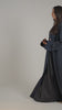 Cut: Kimono-inspired abaya with wide sleeves and open front.