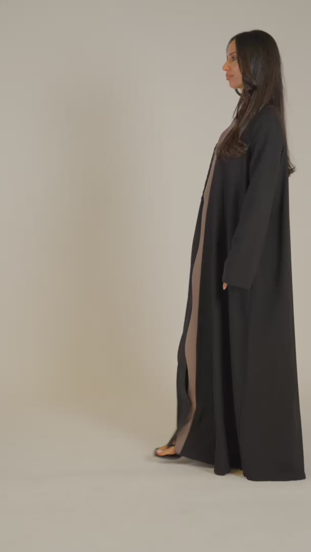 Asymmetrical Rose-Panel Abaya with Floral Handwork