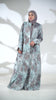 Turquoise & Grey Abstract Printed Abaya with Subtle Embellished Detailing